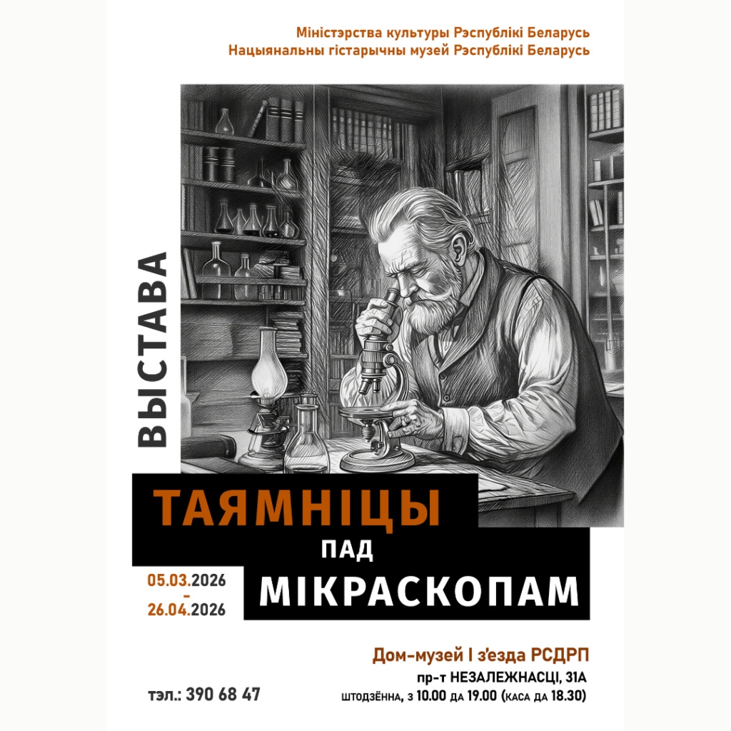 У Доме-музеі І з’езда РСДРП, філіяле Нацыянальнага гістарычнага музея Рэспублікі Беларусь, з 5 сакавіка па 26 красавіка 2026 года пройдзе выстава “Таямніцы пад мікраскопам”.