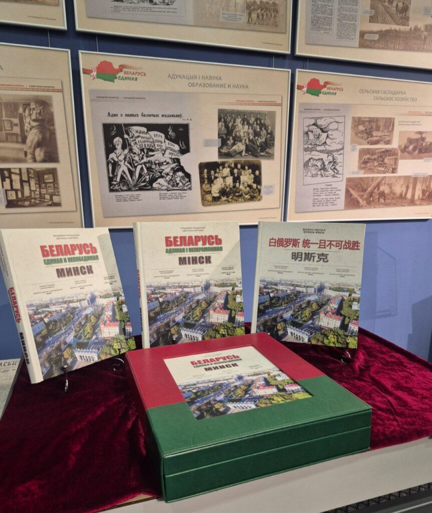 Сёння, 8 кастрычніка 2025 года, у Нацыянальным гістарычным музеі Рэспублікі Беларусь адбылася прэзентацыя кнігі-альбома “Беларусь адзіная і непераможная. Мінск», падрыхтаванай у рамках праекту «Бацькаўшчына» і Гранта Прэзідэнта Рэспублікі Беларусь. Дадзеная кніга праекта выдадзена на 4 мовах: беларускай, рускай, англійскай і ўпершыню – на кітайскай. Аўтарамі кнігі-альбома з’яўляюцца Уладзімір Аляксеевіч Ліхадзедаў, лаўрэат прэміі Прэзідэнта Рэспублікі Беларусь “За духоўнае адраджэнне” і Святлана Юр’еўна Харужык, загадчык сектара фатаграфічных даследаванняў Нацыянальнага гістарычнага музея Рэспублікі Беларусь.