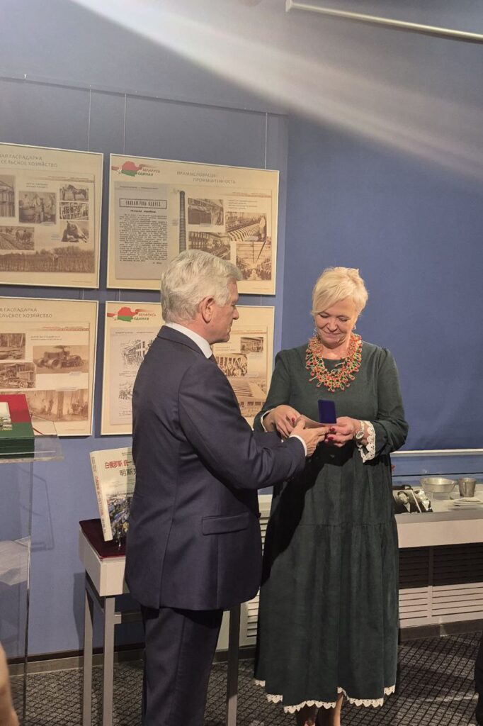 Аўтарам кнігі-альбома А.І. Нічкасаў уручыў нагрудныя знакі “За заслугі ў будаўніцтве” Рэспубліканскага Саюза Будаўнікоў.