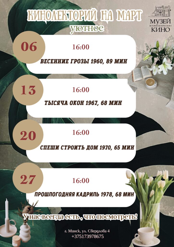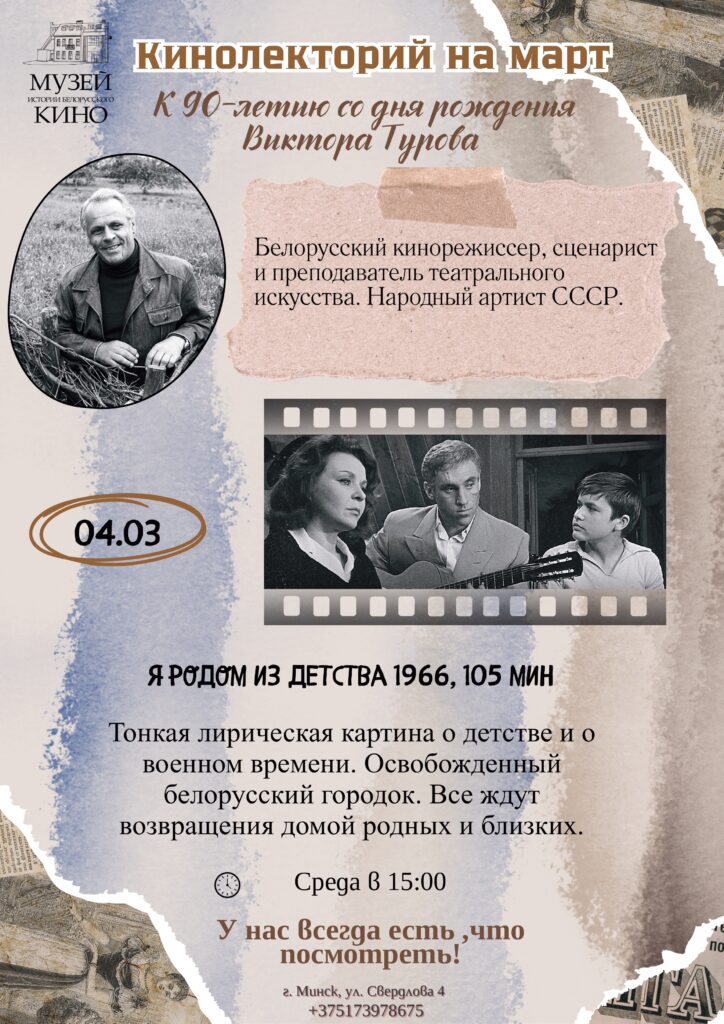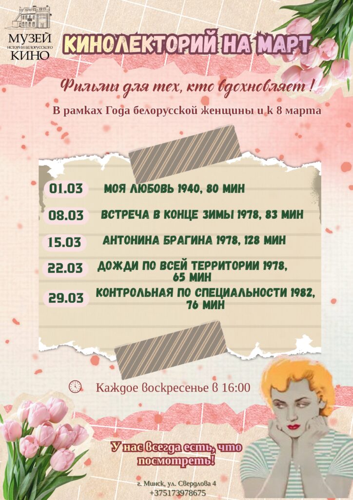 Музей истории белорусского кино приглашает на тематические кинолектории в марте!05.03.2026 ← Вернуться к списку Поделиться