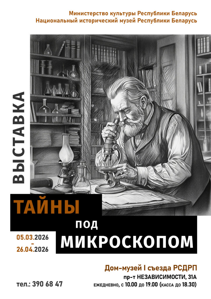 В Доме-музее I съезда РСДРП, филиале Национального исторического музея Республики Беларусь, с 5 марта по 26 апреля 2026 года проходит выставка «Тайны под микроскопом».
