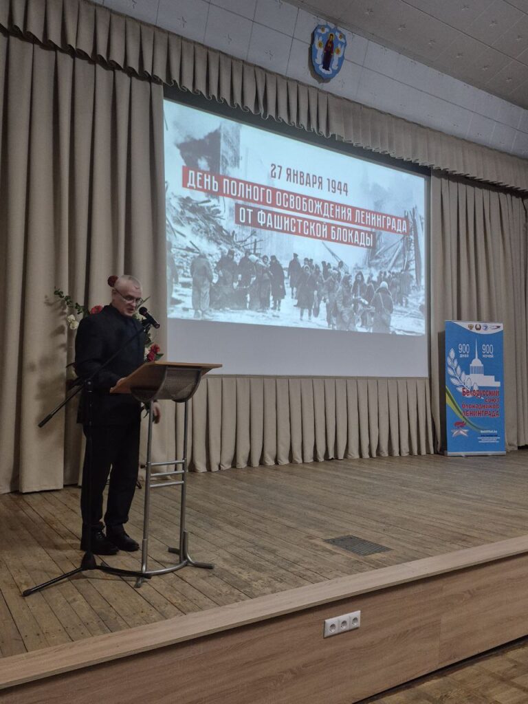 27 января, сотрудники ГУ «Национальный исторический музей Республики Беларусь» посетили мероприятие, посвященное 82-летней годовщине освобождения Ленинграда, которое прошло во Дворце детей и молодежи. На сцене звучали стихи, воспоминания, слова благодарности нынешнему поколению. Одним из ключевых моментов мероприятия стал показ документального фильма «Хроника. Блокадное детство», в котором снялись сами жители блокадного Ленинграда.